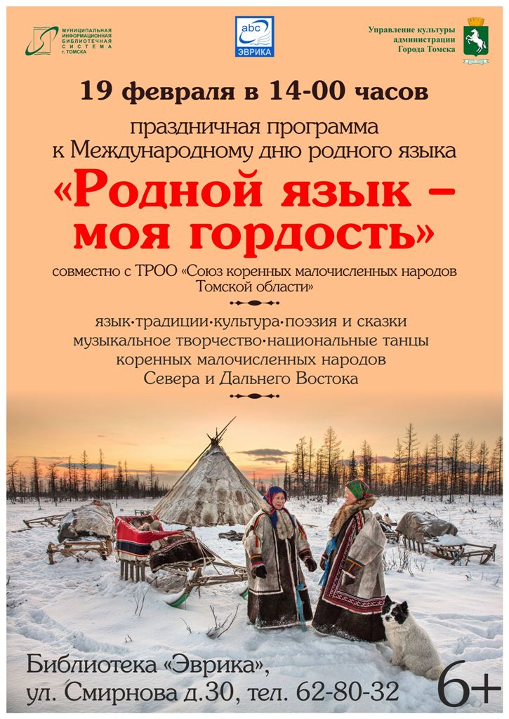 19 февраля в 14.00 в муниципальной библиотеке «Эврика» (ул. Смирнова, 30) пройдёт праздничная программа «Родной язык – моя гордость», посвящённая Международному дню родного языка. Участников ждёт встреча с представителями коренных малочисленных народов Севера, которые помогут раскрыть языковое разнообразие в Томской области.Гости библиотеки узнают об истории праздника, о величии и богатстве языковой культуры России, о значении родной речи для человека. На мероприятии будет присутствовать Л. И. Петушихина, председатель Томского регионального отделения «Союз женщин России», которая подчеркнёт важность сохранения родного языка для объединения семьи и воспитания детей. 10.02.2026 г.