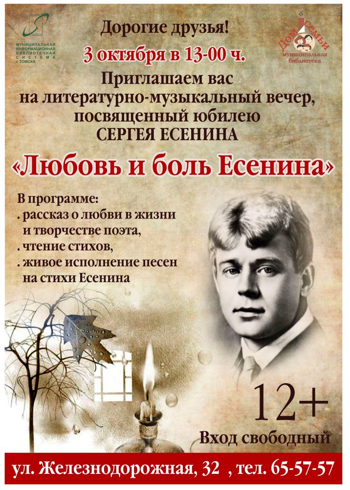 Литературно-музыкальный вечер «Любовь и боль Есенина»