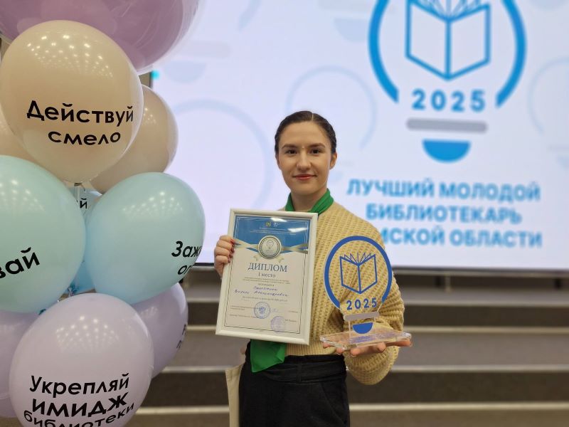 По итогам испытаний В. Смокотина получила высокую оценку экспертного жюри, заняла 1 место, ей присвоено звание "Лучший молодой библиотекарь Томской области 2025 года".