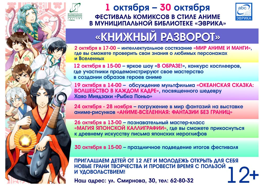 ![]() Присоединиться к мероприятиям фестиваля можно в любой момент, обратившись в библиотеку «Эврика». Для участия в выставке «Аниме-Вселенная: фантазии без границ» все желающие могут представить свои работы в любой технике, включая цифровые рисунки. Основные требования к работам: формат А3, авторское исполнение и соблюдение тематики. Подробная информация о фестивале - на страницах библиотеки «Эврика» в социальных сетях «Одноклассники» и «Вконтакте». В программе фестиваля: 20.09.2025 г.