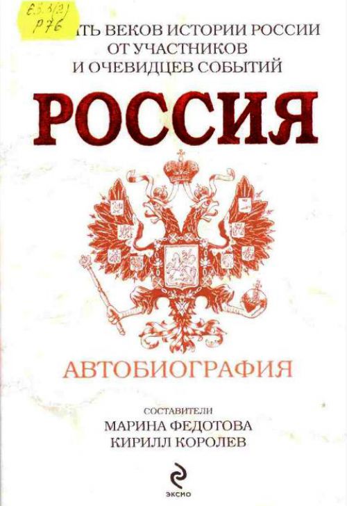 | Россия. Автобиография [Текст] / [сост.: Марина Федотова, Кирилл Королев]. - Москва : Эксмо ; Санкт-Петербург : Мидгард, 2009. - 1231 с. | |